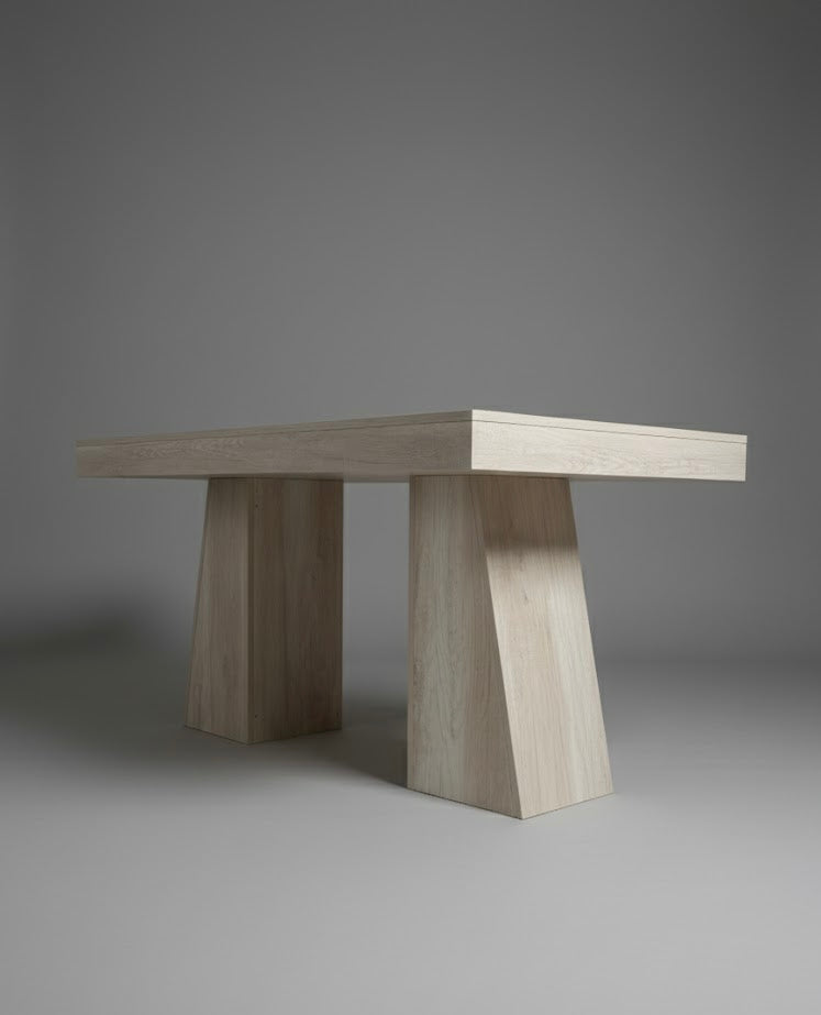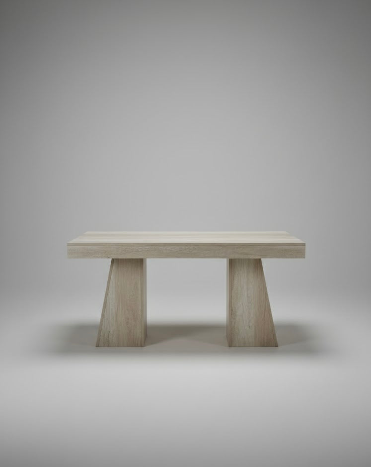 Escritorio de diseño moderno fabricado en MDF con acabado melamínico tono Helsinki, un color claro y elegante que resalta la veta natural de la madera. Su estructura con bases trapezoidales le otorga gran estabilidad y un estilo contemporáneo, ideal para oficinas, home office o estudios. Una pieza funcional y sofisticada que aporta calidez y modernidad a cualquier espacio.